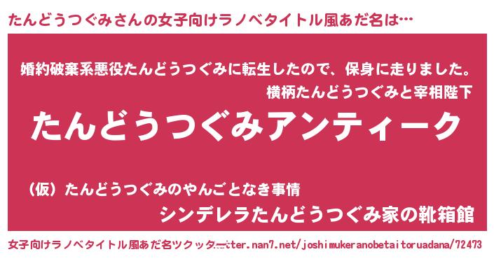 | 胡散臭い通販商品みたいなあだ名 | 『ガンによく効く高麗人参…その名も「たんどうつぐみ」』 |