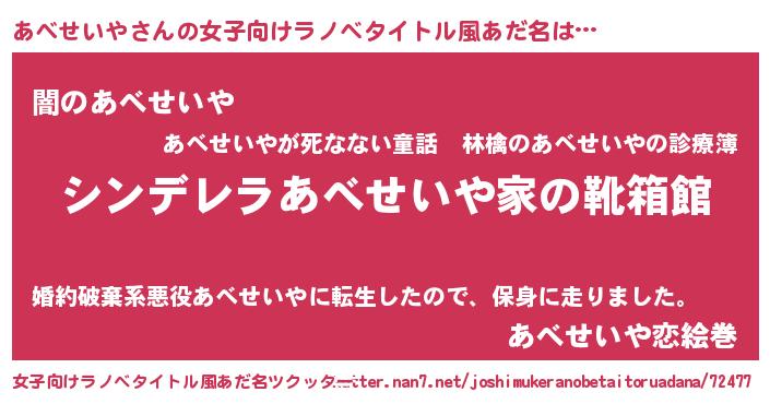 | 意味不明あだ名 | 『自称あべせいや』『ペロリンあべせいや』 |