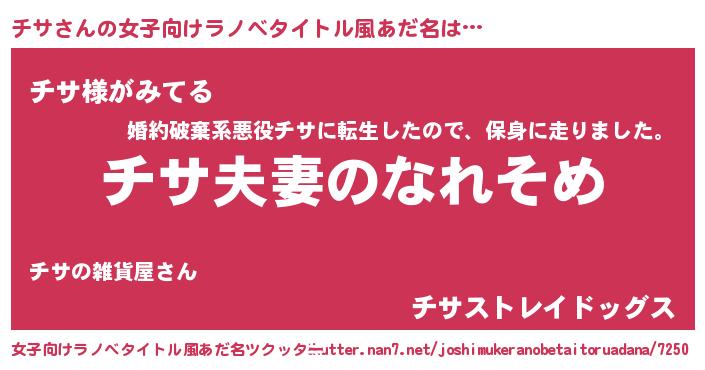 | 男性向けラノベタイトル風あだ名 | 『おまえをオタクにしてやるから、俺をチサにしてくれ! 』 |