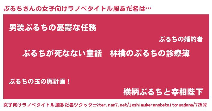 | ヒーロー風カッコイイあだ名 | 『仮面ブルダー』『ウルトラぶるちマン』 |