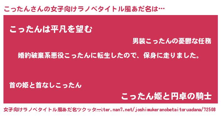| 男性向けラノベタイトル風あだ名 | 『転生したらこったんだった件』 |