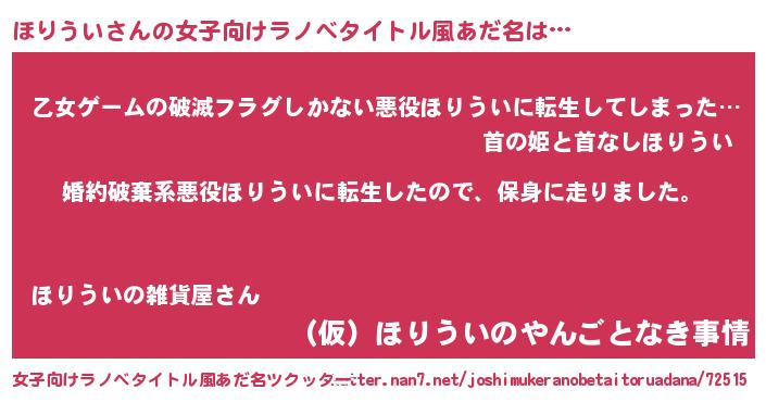 | ヘコむあだ名 | 『ほりにー』『豆乳』『ほりっぺ』 |