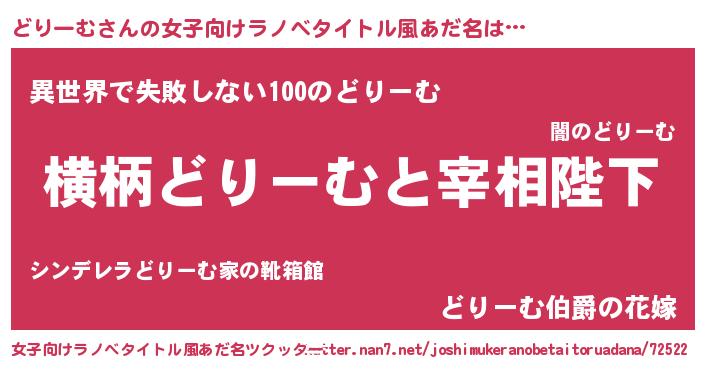 | 男性向けラノベタイトル風あだ名 | 『どりーむに滅ぼされるだけの簡単なお仕事です』 |