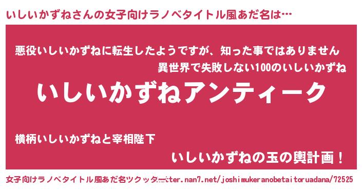 | 意味不明あだ名 | 『自称いしいかずね』 |