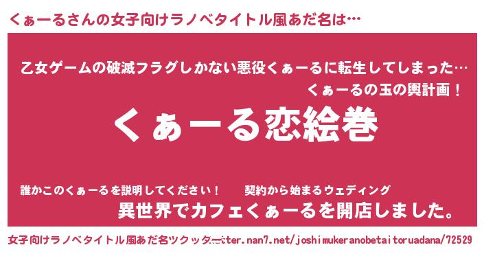 | ヘコむあだ名 | 『くぁーる(笑)』『くぁにー』 |