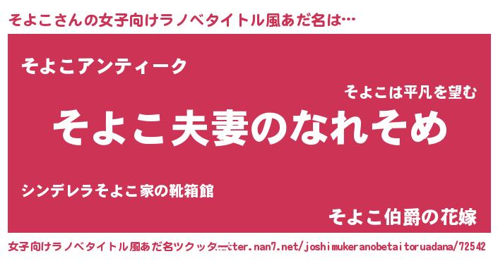 | 欧米人風あだ名 | 『ダニエルそよこ』『ケンブリッジそよこ』 |