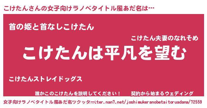 | 男性向けラノベタイトル風あだ名 | 『ダンジョンにこけたんを求めるのは間違っているだろうか』 |