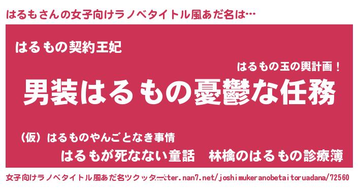 | 男性向けラノベタイトル風あだ名 | 『冴えないはるもの育てかた』 |