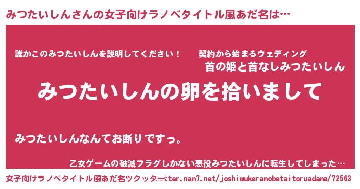 | 男性向けラノベタイトル風あだ名 | 『みつたいしんの嫁は女の子じゃないと思った?』 |