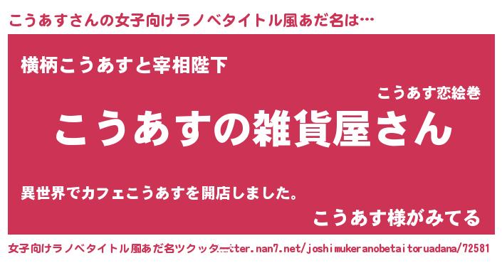 | 意味不明あだ名 | 『こうあすフォーエバー』 |