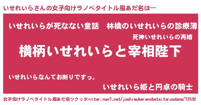 | ヒーロー風カッコイイあだ名 | 『仮面イセダー』『スーパーイセレイラ』 |