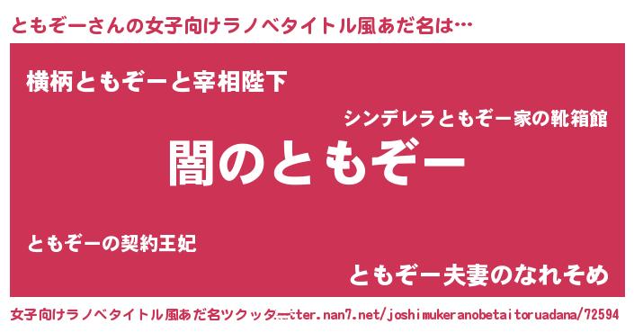 | 男性向けラノベタイトル風あだ名 | 『Re:ともぞーから始める異世界生活』 |