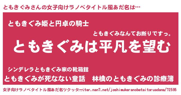 | 男性向けラノベタイトル風あだ名 | 『ダンジョンにともきぐみを求めるのは間違っているだろうか』 |