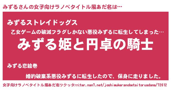 | 胡散臭い通販商品みたいなあだ名 | 『モテモテ間違いなし霊験あらたかなお札…その名も「みずる」』 |