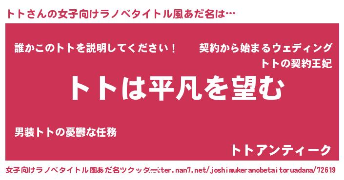 | 胡散臭い通販商品みたいなあだ名 | 『信頼と実績のサプリメント…その名も「トト」』 |