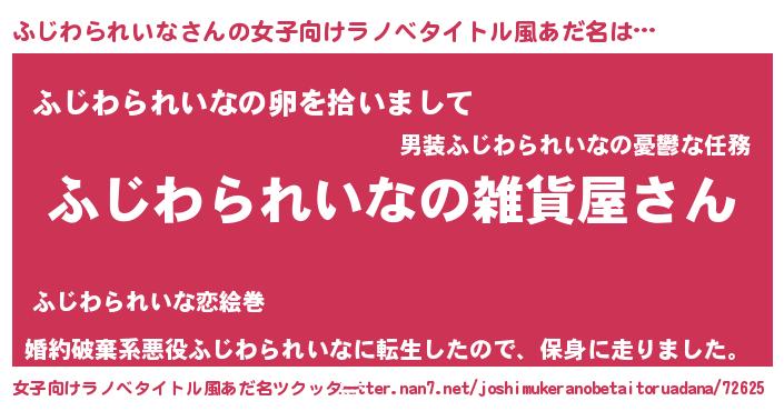 | 男性向けラノベタイトル風あだ名 | 『やはりふじわられいなの青春ラブコメはまちがっている 』 |