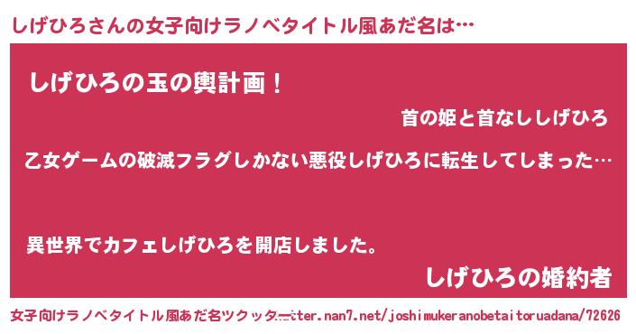 | 男性向けラノベタイトル風あだ名 | 『この素晴らしい世界にしげひろを!』 |