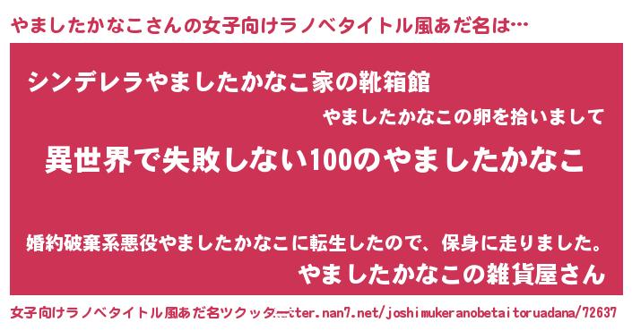 | 胡散臭い通販商品みたいなあだ名 | 『絶対に幸福をもたらす健康食品…その名も「やましたかなこ」』 |