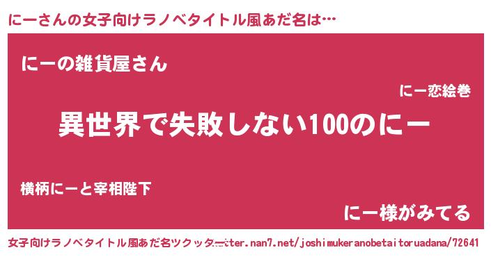 | 胡散臭い通販商品みたいなあだ名 | 『絶対に幸福をもたらす水素水…その名も「にー」』 |