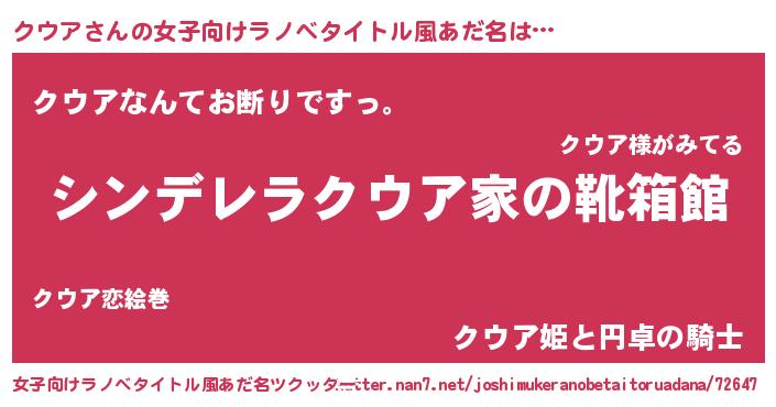 | 男性向けラノベタイトル風あだ名 | 『緋弾のクウア』『魔法科高校のクウア』 |