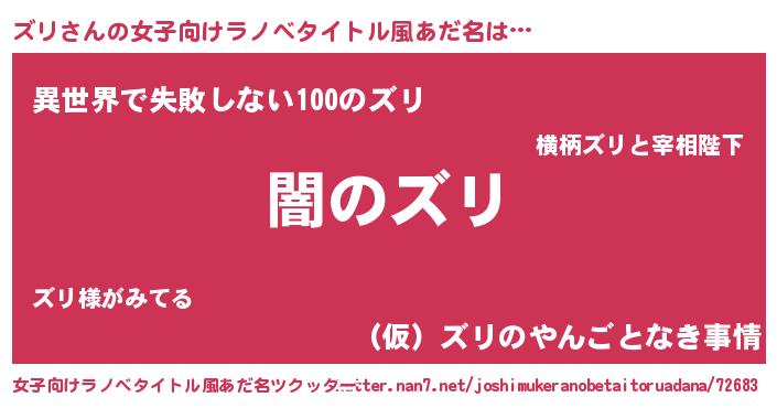 | 男性向けラノベタイトル風あだ名 | 『Re:ズリから始める異世界生活』 |