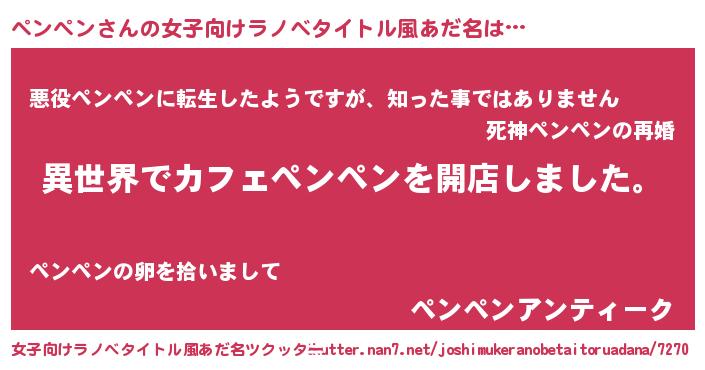 | 意味不明あだ名 | 『永久保存ペンペン』『自称ペンペン』 |