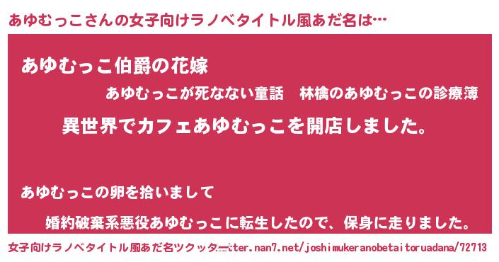 | 男性向けラノベタイトル風あだ名 | 『誰もが恐れるあのあゆむっこが、ぼくの専属メイドになるようです。』 |