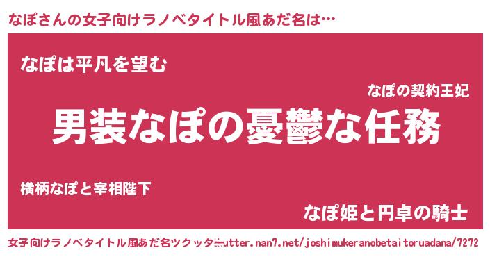 | 男性向けラノベタイトル風あだ名 | 『冴えないなぽの育てかた』 |