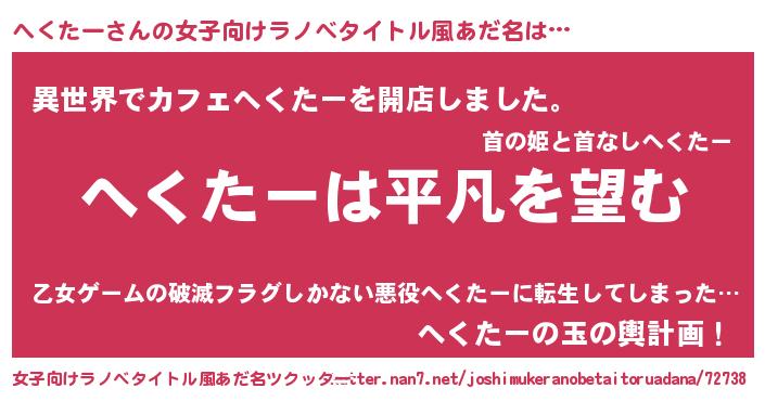 | 男性向けラノベタイトル風あだ名 | 『ダンジョンにへくたーを求めるのは間違っているだろうか』 |