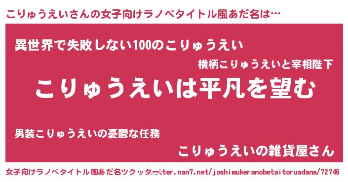 | 胡散臭い通販商品みたいなあだ名 | 『信頼と実績のネックレス…その名も「こりゅうえい」』 |