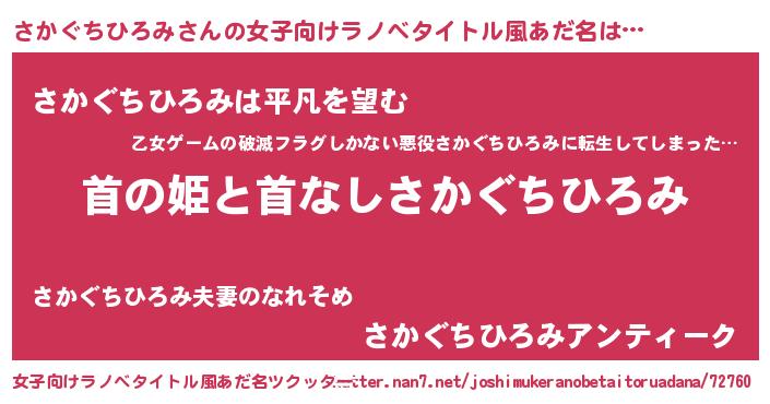 | 胡散臭い通販商品みたいなあだ名 | 『信頼と実績のペンダント…その名も「さかぐちひろみ」』 |