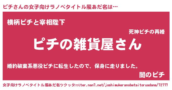 | 男性向けラノベタイトル風あだ名 | 『やはりピチの青春ラブコメはまちがっている 』 |