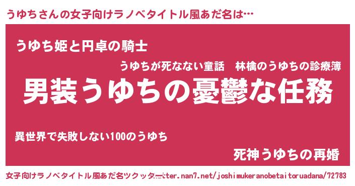 | 意味不明あだ名 | 『ペロリンうゆち』『永久保存うゆち』 |