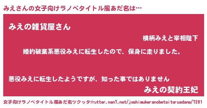 | 男性向けラノベタイトル風あだ名 | 『転生したらみえだった件』 |