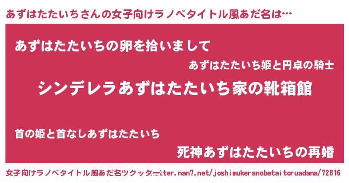 | 胡散臭い通販商品みたいなあだ名 | 『信頼と実績のサプリメント…その名も「あずはたたいち」』 |