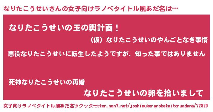 | 男性向けラノベタイトル風あだ名 | 『この素晴らしい世界になりたこうせいを!』 |