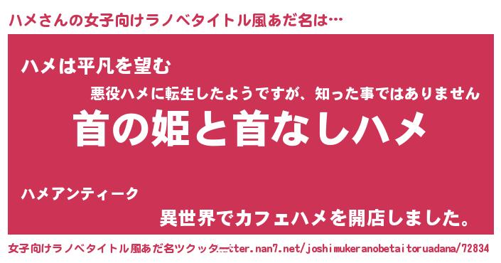 | 男性向けラノベタイトル風あだ名 | 『はたらくハメさま!』 |