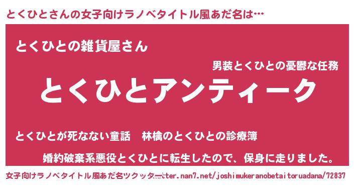 | 意味不明あだ名 | 『自称とくひと』『とくひとフォーエバー』 |