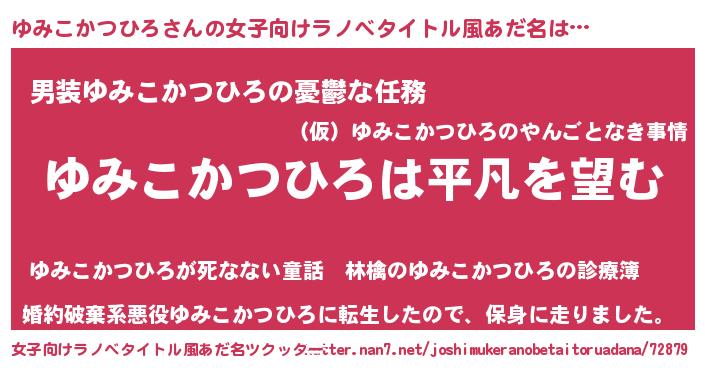 | 男性向けラノベタイトル風あだ名 | 『ダンジョンにゆみこかつひろを求めるのは間違っているだろうか』 |