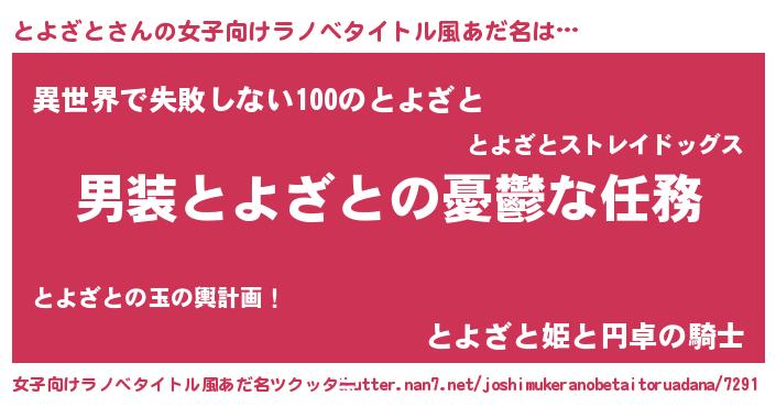 | 意味不明あだ名 | 『永久保存とよざと』『ペロリンとよざと』 |