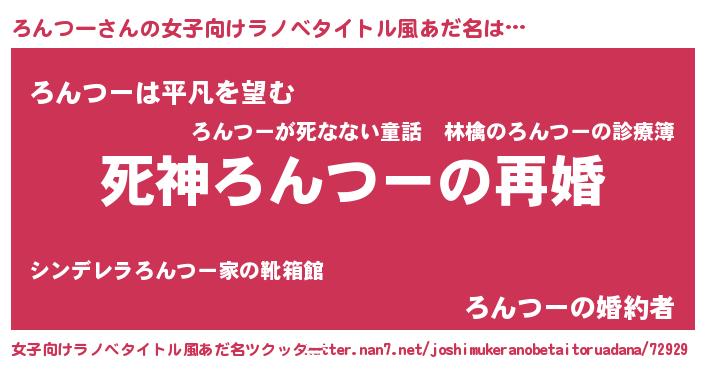 | 男性向けラノベタイトル風あだ名 | 『ノーゲーム・ノーロンツー』 |