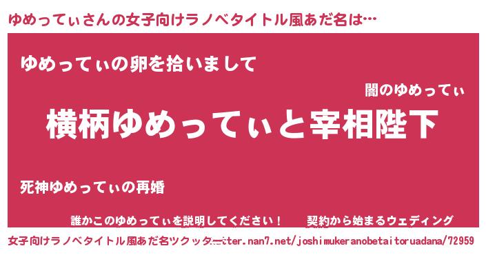 | 男性向けラノベタイトル風あだ名 | 『ゆめってぃに滅ぼされるだけの簡単なお仕事です』 |