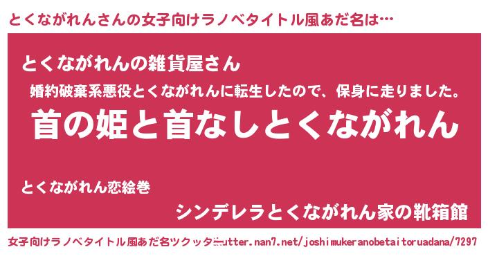 | 男性向けラノベタイトル風あだ名 | 『はたらくとくながれんさま!』 |