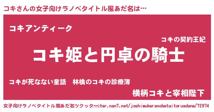 | 男性向けラノベタイトル風あだ名 | 『コキの憂鬱』『魔法科高校のコキ』 |