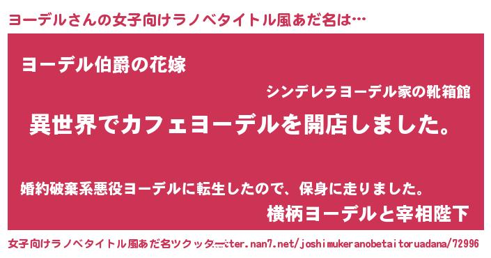 | 男性向けラノベタイトル風あだ名 | 『誰もが恐れるあのヨーデルが、ぼくの専属メイドになるようです。』 |