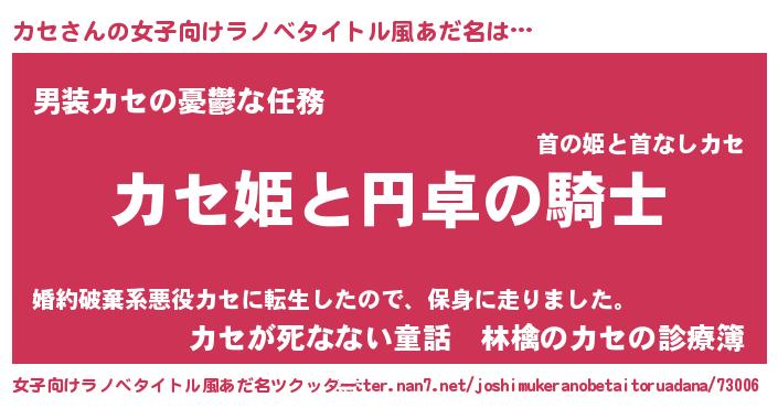 | 男性向けラノベタイトル風あだ名 | 『カセの憂鬱』『魔弾の王とカセ』 |