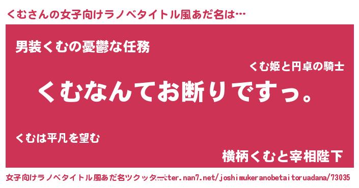 | 男性向けラノベタイトル風あだ名 | 『魔法科高校のくむ』『くむの憂鬱』 |