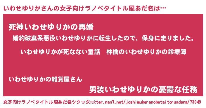| 胡散臭い通販商品みたいなあだ名 | 『ハリウッド女優が絶賛した100年もののヴィンテージワイン…その名も「いわせゆりか」』 |