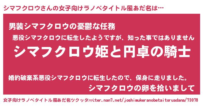 | 男性向けラノベタイトル風あだ名 | 『シマフクロウアートオンライン』 |