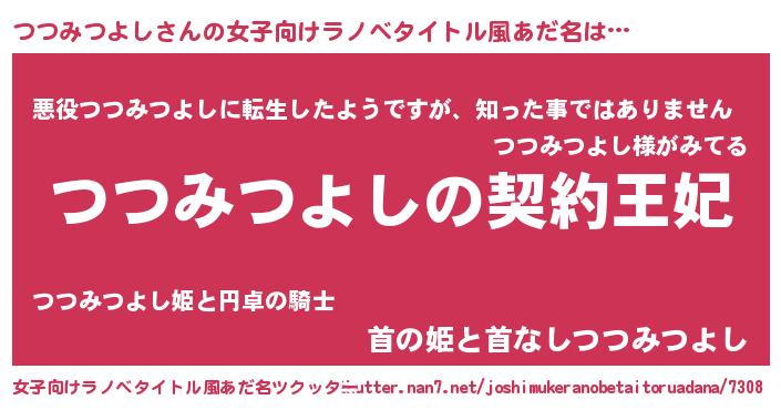 | 男性向けラノベタイトル風あだ名 | 『誰もが恐れるあのつつみつよしが、ぼくの専属メイドになるようです。』 |